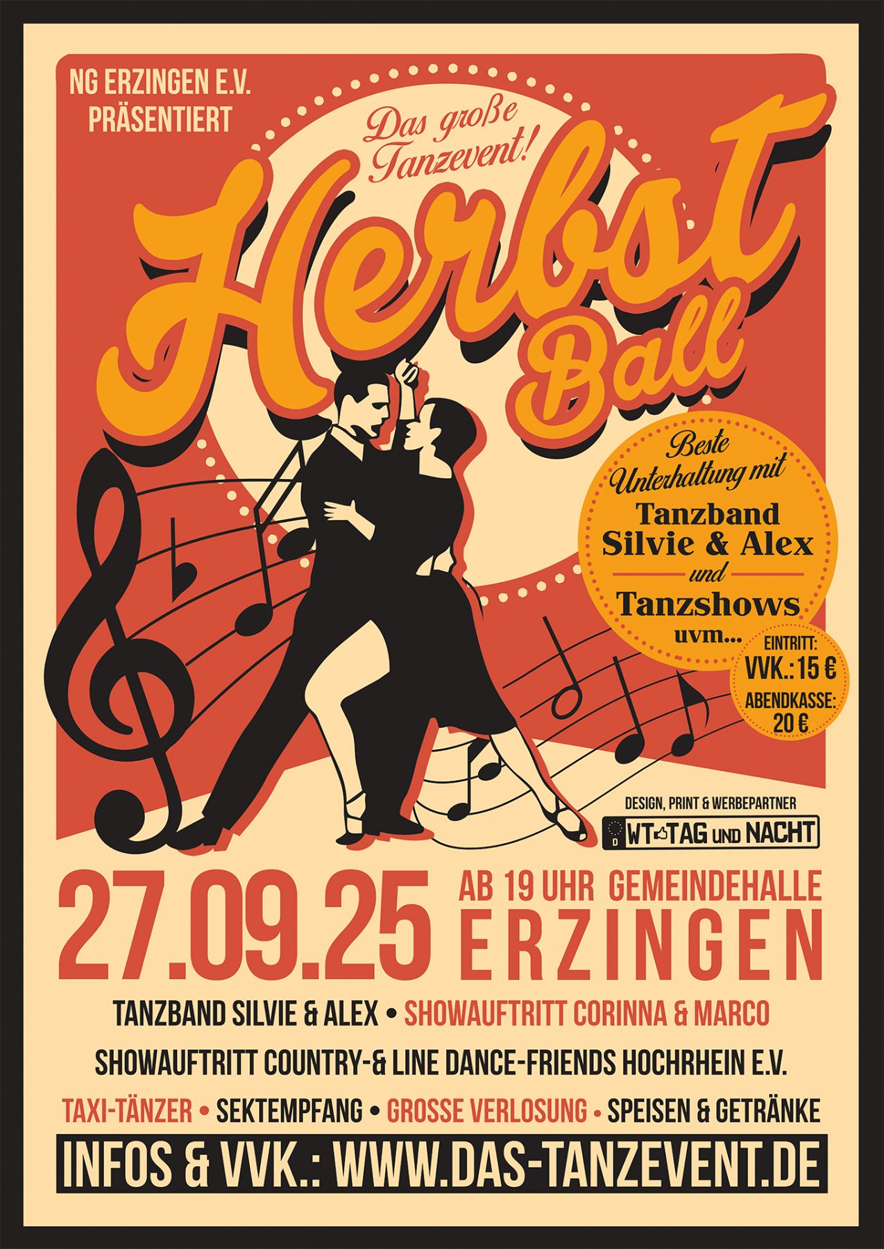 Für alle Tanzbegeisterten und Musikliebhaber bietet sich dieses Jahr eine besondere Gelegenheit: Der "Herbst Ball - Das große Tanzevent!" lädt zu einem unvergesslichen Abend voller Tanz, Musik und Geselligkeit in die Gemeindehalle Klettgau-Erzingen ein. Organisiert von der NG Erzingen und unterstützt z.B. durch das große RegioPortal WT - Tag & Nacht, verspricht die Veranstaltung ein Highlight für die gesamte Region zu werden.